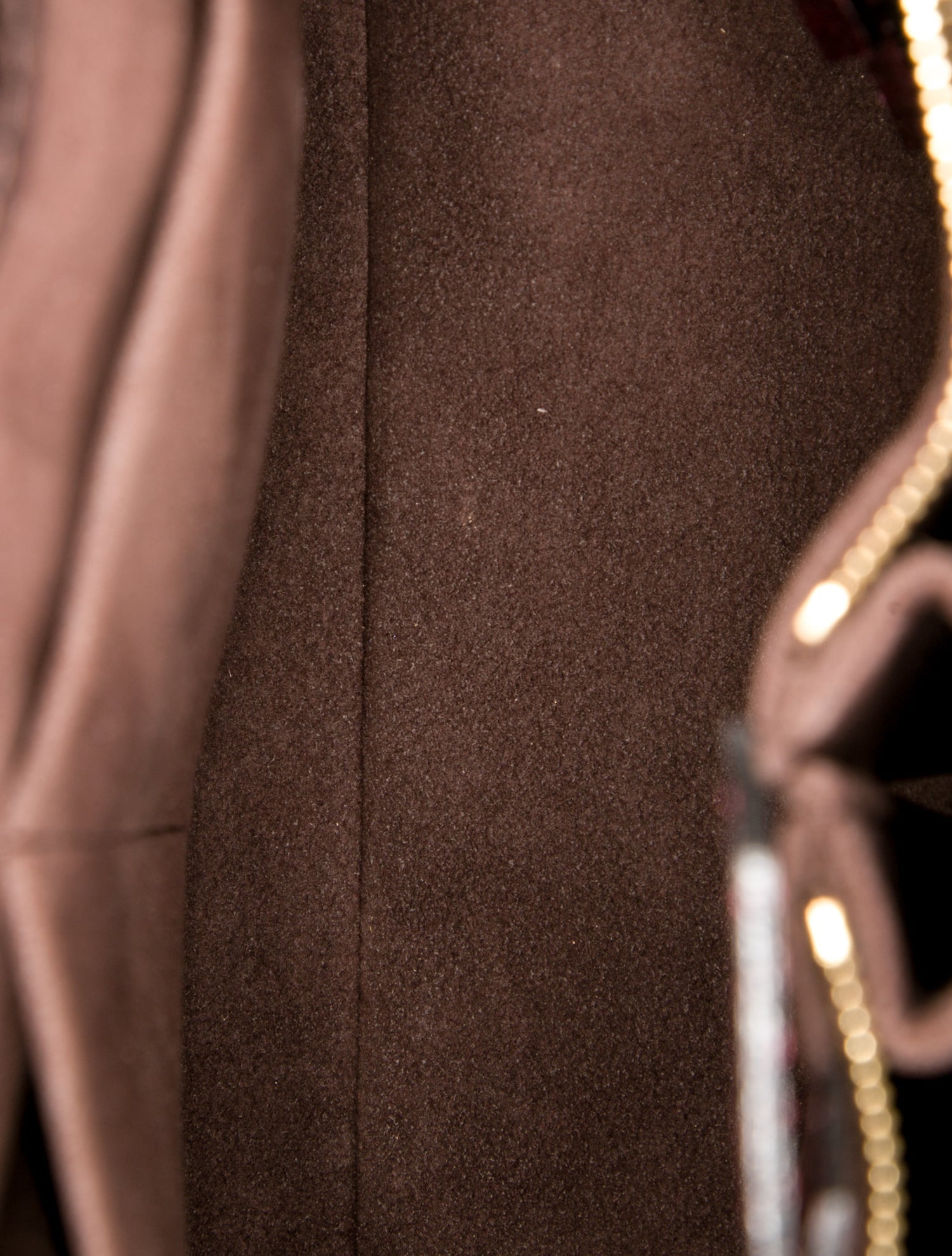 - Minor scratches at hardware; minor discoloration at interior; shape has relaxed due to wear