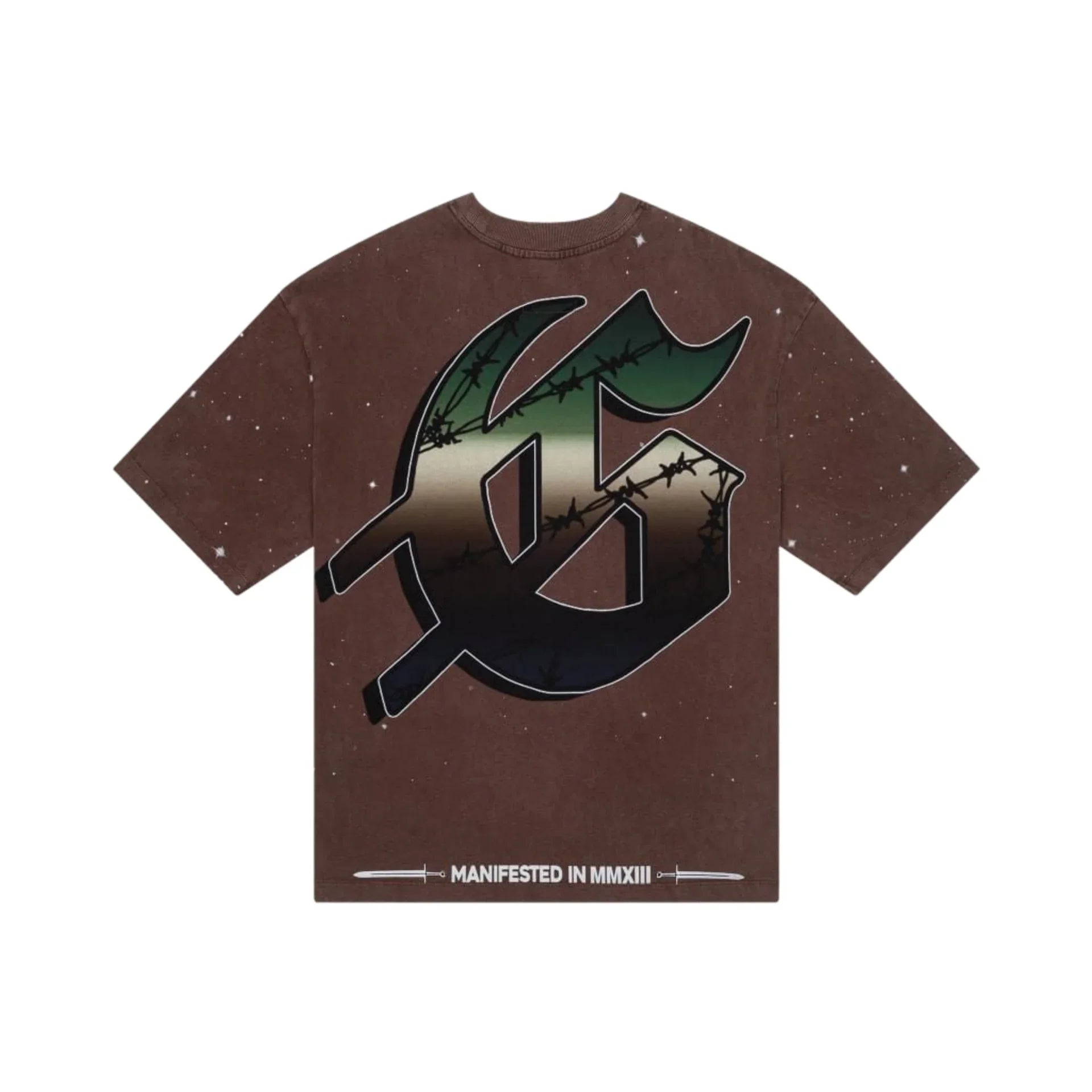 Air Strike T-Shirt in Brown-Wash is crafted from 10oz mid-weight washed fabric and features a striking digital art piece. With a limited run of 555 units, each piece includes a numbered tag to confirm its authenticity.