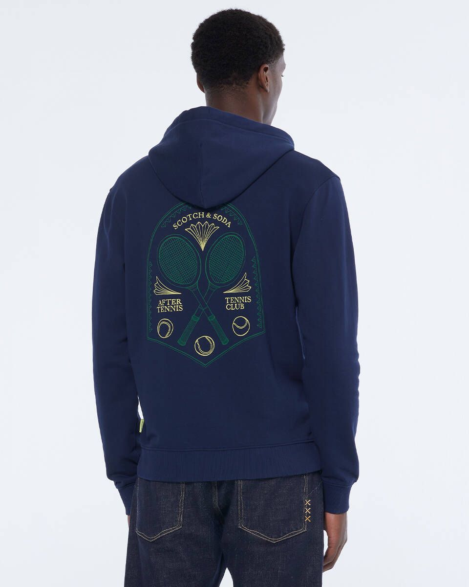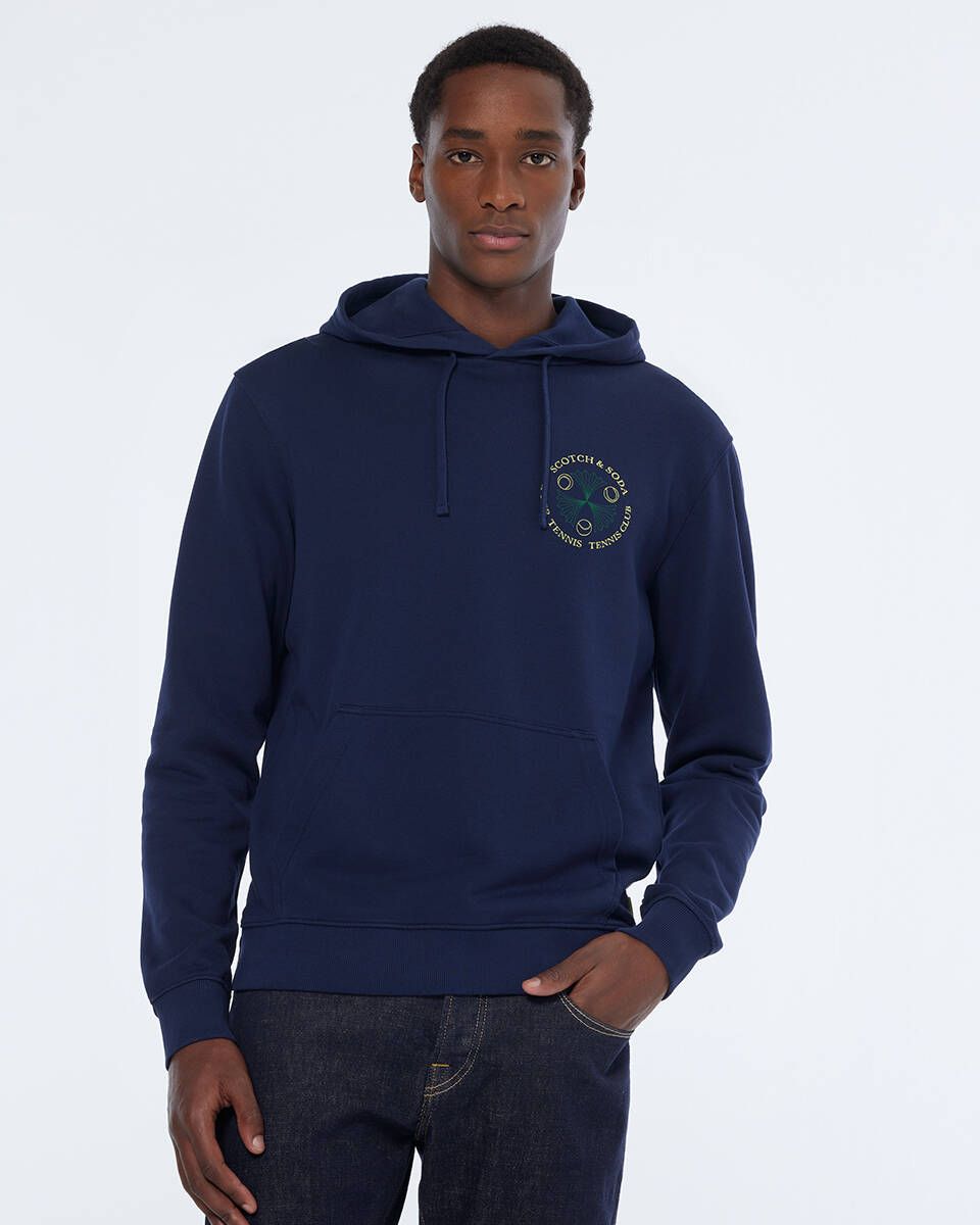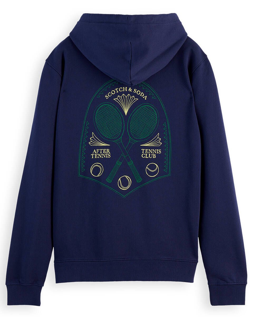 This navy Front And Back Artwork Hoodie by scotch & soda offers a stylish and unique design. The front and back artwork adds a touch of personality to this comfortable hoodie, perfect for any casual outfit. Made with high-quality materials, this hoodie is a must-have for any fashion-forward individual.