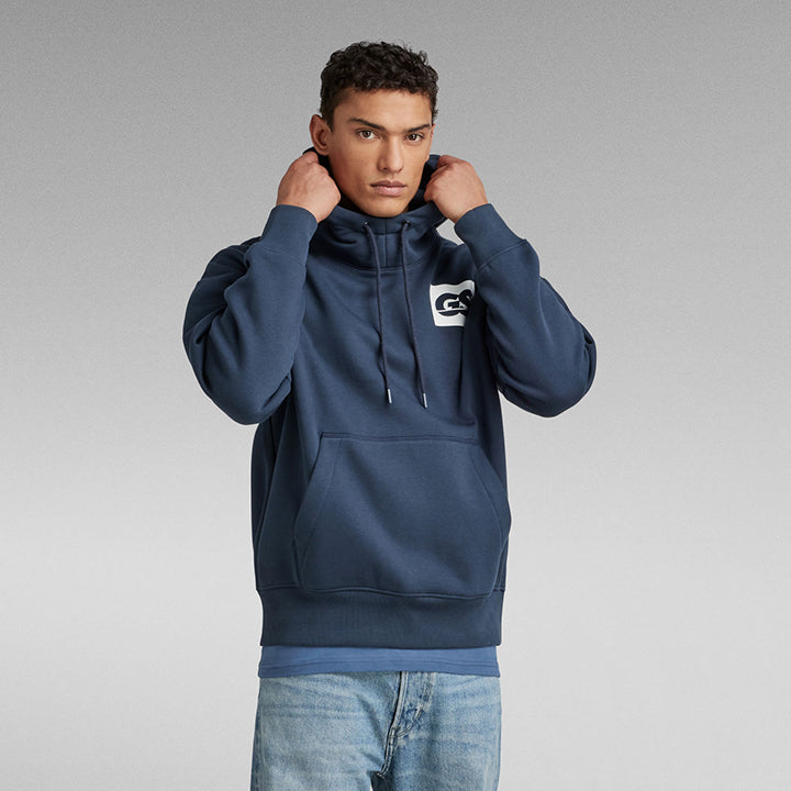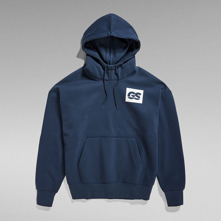 Hooded sweater GS RAW Back Graphic is designed in a loose fit and offers a roomy hood with a raised front. Drawcords are added to allow for a personalized fit. The chest and back show a graphic printed design. A comfy kangaroo pocket completes it.