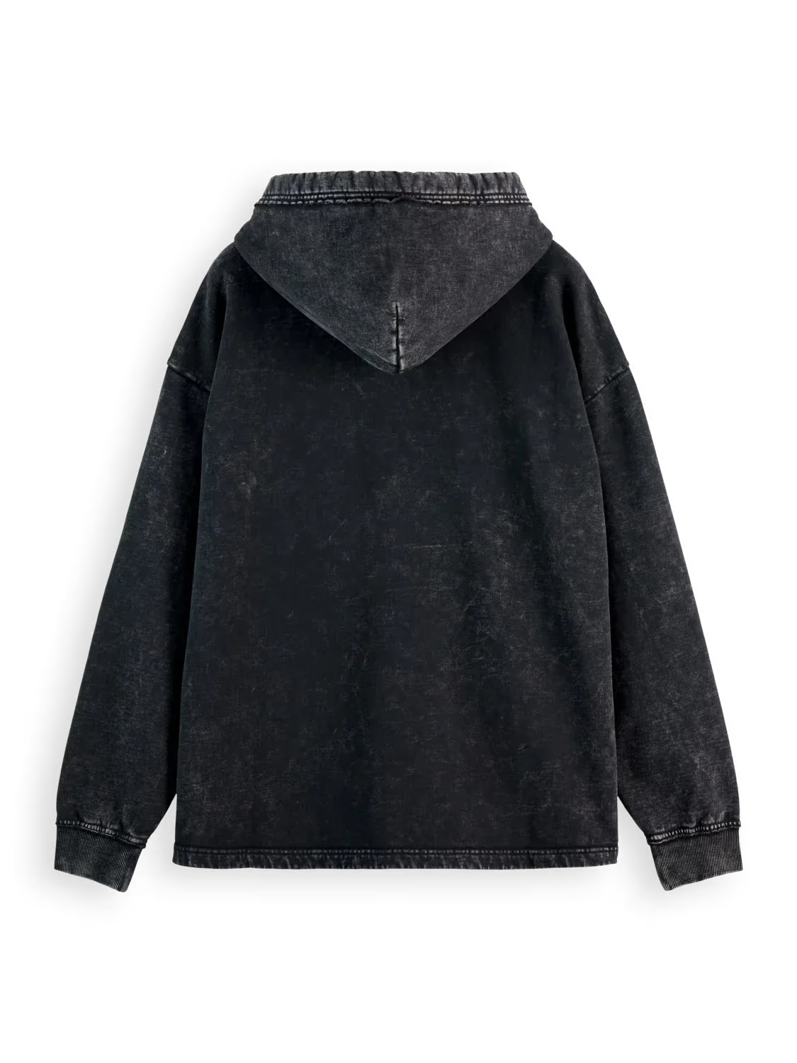 Lounge or step out in this effortlessly comfortable hoodie, featuring a unique angel Scotch & Soda print. Its rib knit cuffs and loose fit ensure a day-long comfort that’s hard to match, blending casual wear with artistic expression.
