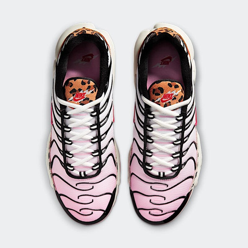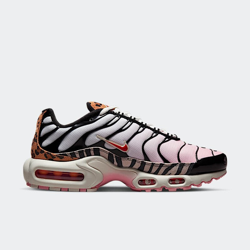 The Nike Air Max Plus "Animal Instinct" with the stylecode "DZ4842-600" and the official colorway "Medium Soft Pink/Black/Summit White/University Red" is scheduled for release on: 2025-03-20
