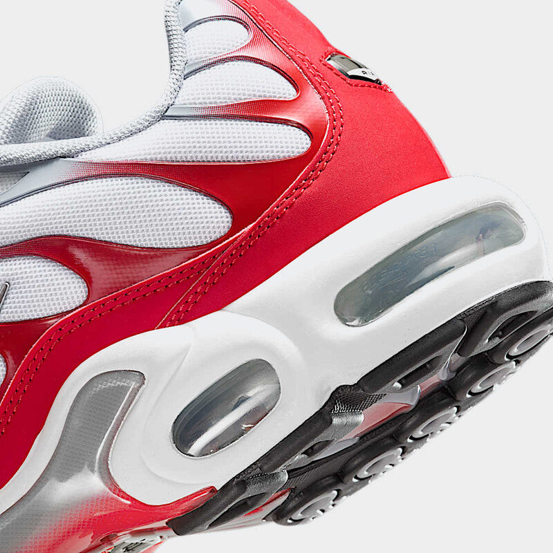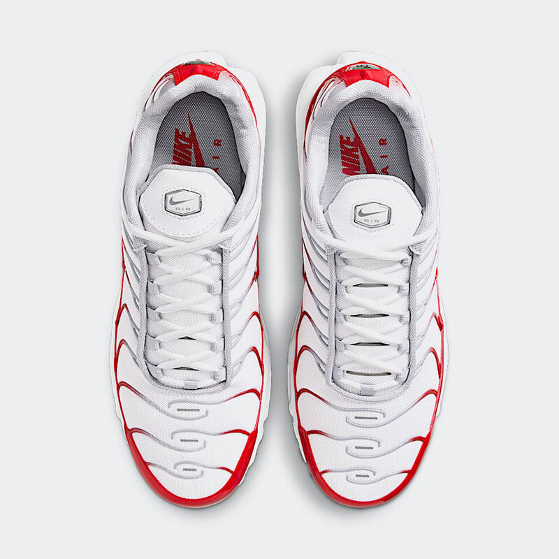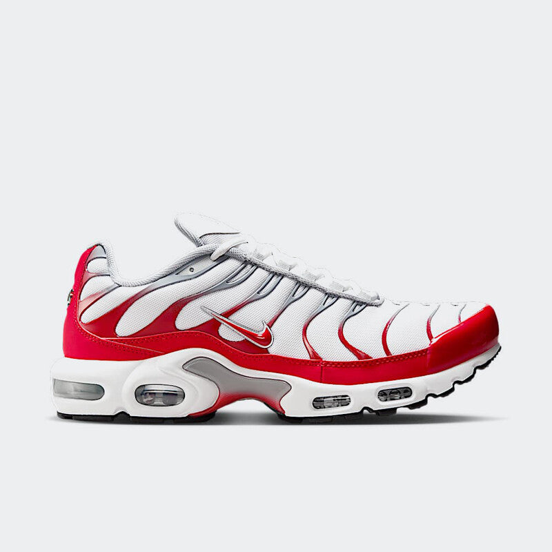 The Nike Air Max Plus "University Red" with the stylecode "IF6224-101" and the official colorway "White/Wolf Grey/Black/University Red" is scheduled for release on: 2025-04-29