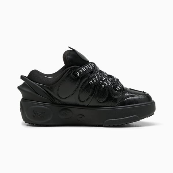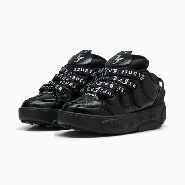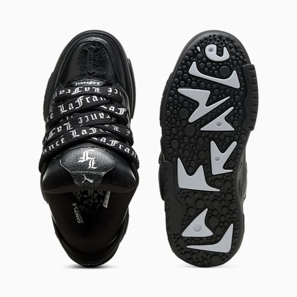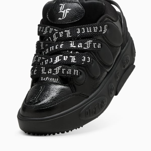 Bring LaMelo Ball's elevated style to your sneaker collection with the PUMA LaFrancé. Named after Melo's lifestyle brand, this exaggerated, street-inspired silhouette draws inspiration from extreme Y2K aesthetics. This chromed out drop features hits of silver and a sleek, futuristic feel, with allover LaFrancé branding and shiny finishes.