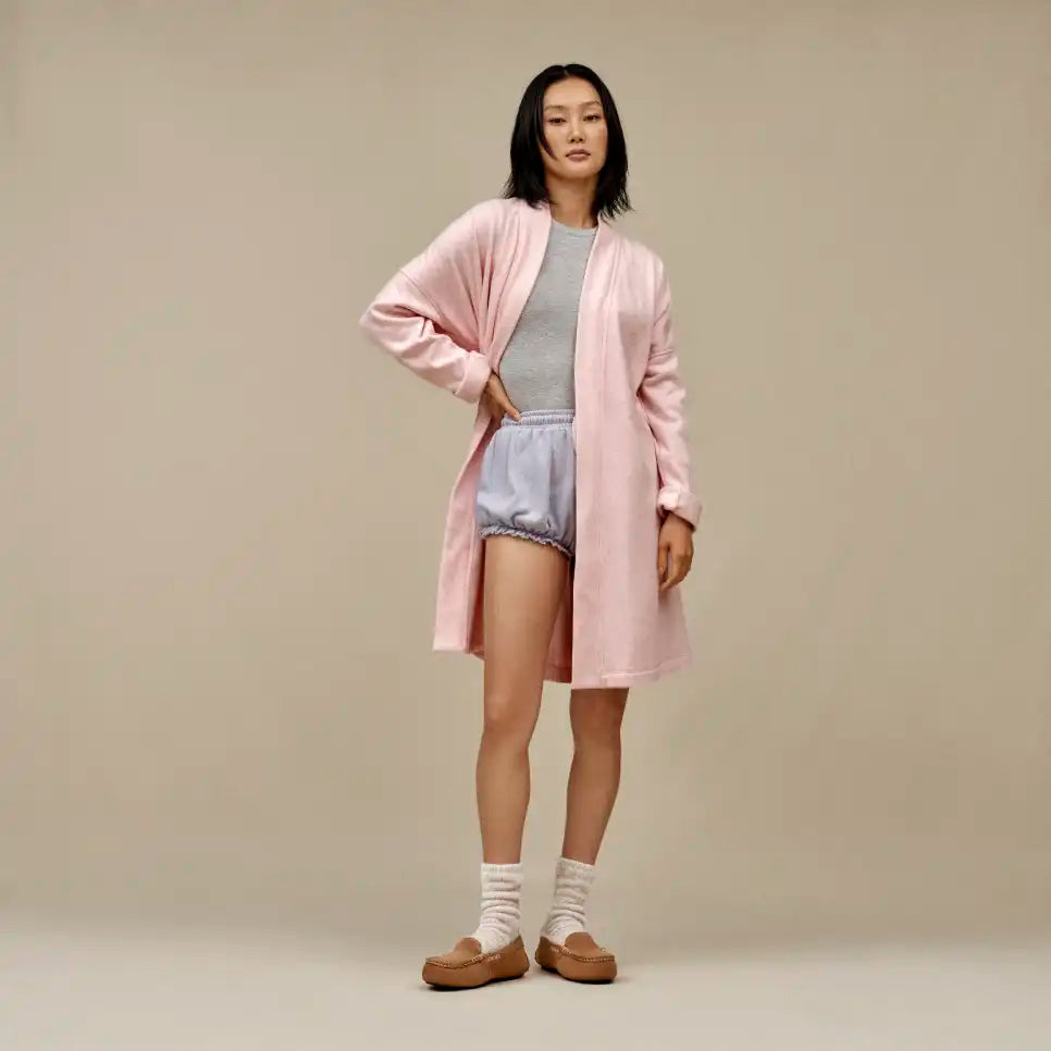 There's slippers. And then there's slipper perfection. We live in the slipper perfection universe at UGG™. Where you are supported, cozy, and blissed out. Welcome. Our Ansley is a slipper so perfect you might forget to take it off when you leave the house. It features a cloud-like wool lining and a versatile outsole for any surface. How can we count more ways that this slipper totally wins? Gotta add to cart, find out, and let us know.