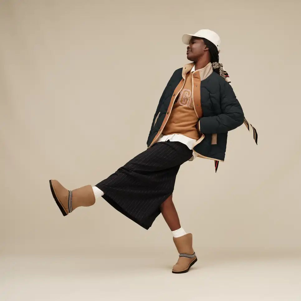 - Suede vamp, UGGbraid made with 100% recycled polyester fibers, Suede heel counter, 17mm Twinface Sheepskin shaft