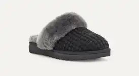 It's like slipping on a warm and super soft sweater. Wintercore at its finest, our Cozy Slipper has a sweater knit fabric across the outside and is fully lined with sheepskin. A fluffy collar finishes off this comfy-cozy look, and don't worry - this is a knit slipper for women that is super lightweight, with a durable outsole so you can be cozy-strong. Available in a range of dark and light neutral colors including black, grey, and cream.