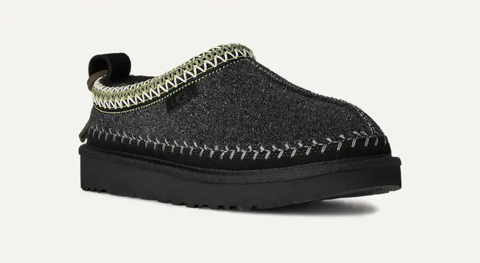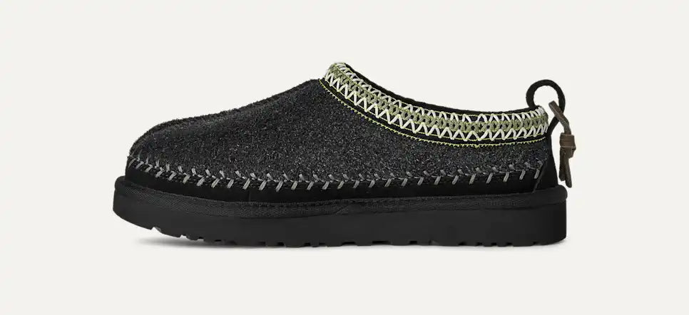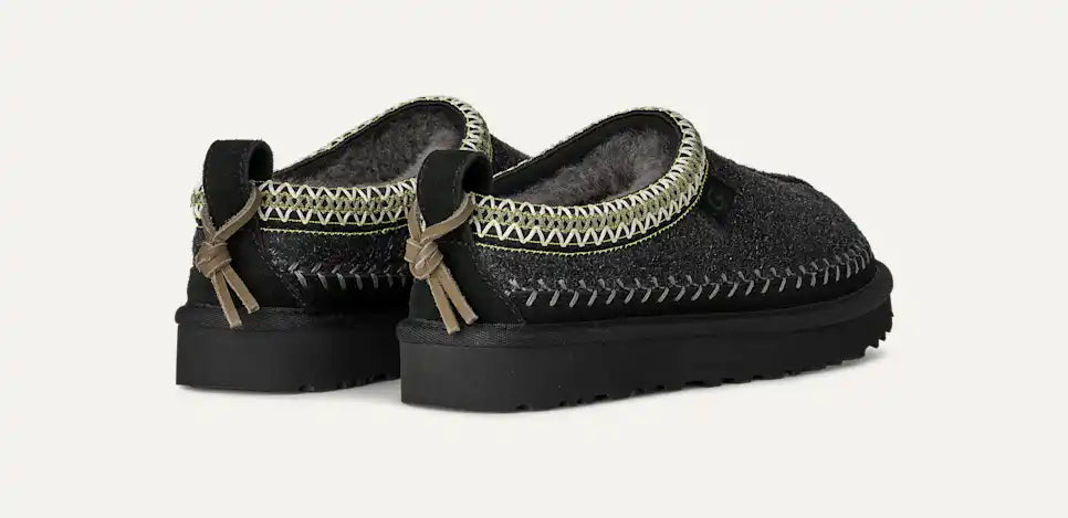 - Suede mudguard, Decorative stitching, Rear pull tab, Leather tassel, Suede heel counter, UGGbraid made with 100% recycled polyester fibers