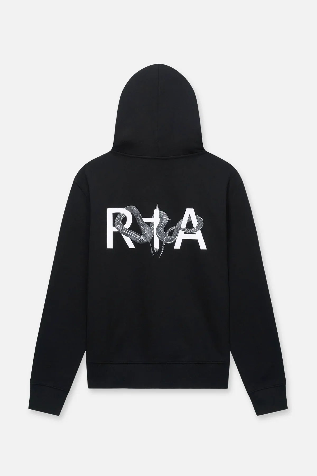 The Dion Hoodie in Black Snake Logo Character is made from 100% cotton. This hoodie is designed with an oversized fit, on the chest, and a large serpent RTA logo across the back. Featuring an adjustable, coated drawstring, kangaroo pocket, and a ribbed waistband and cuffs.