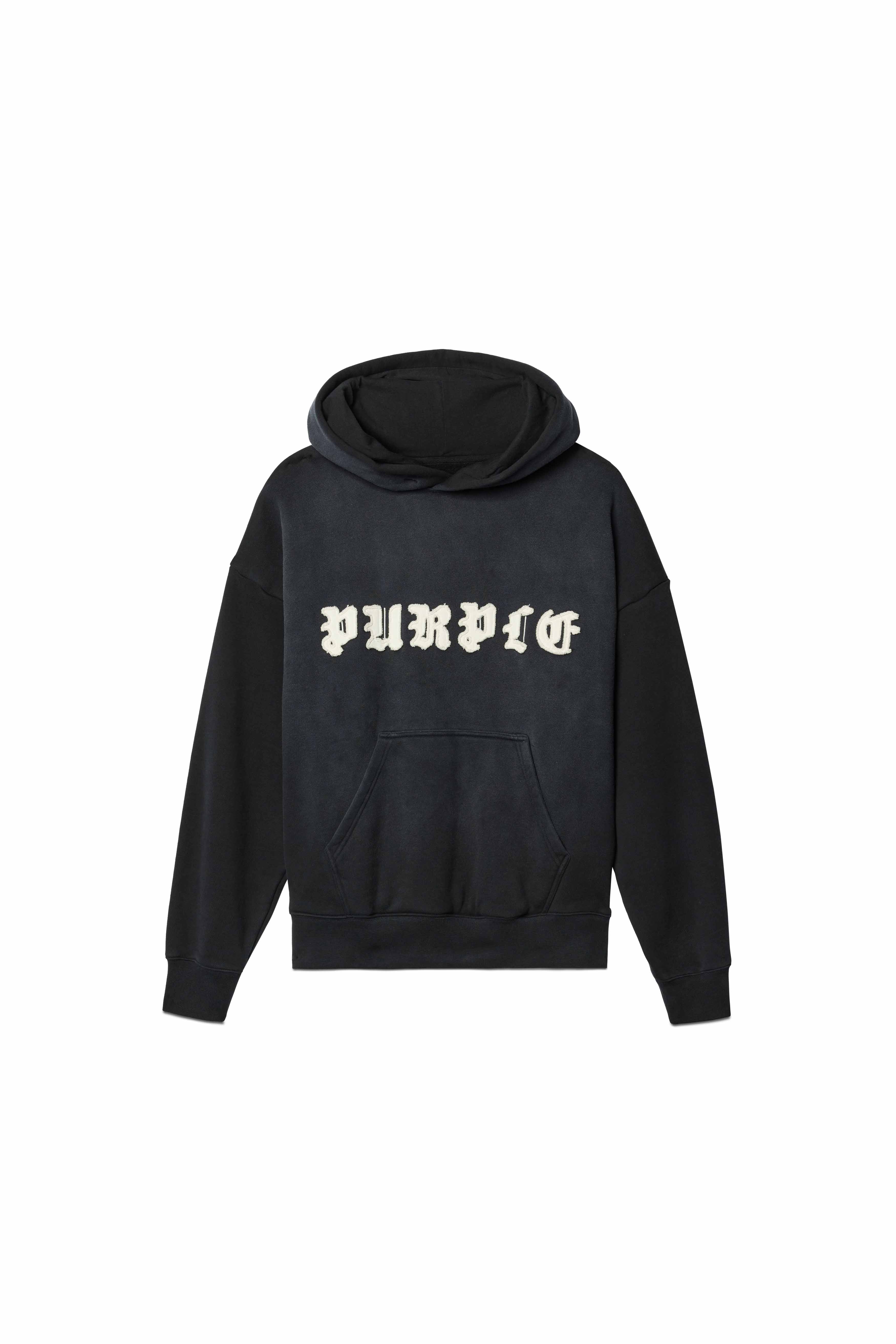This core hoodie is defined by gothic Purple Brand logo lettering across the chest. It’s cut for an oversized fit from black heavyweight fleece, and features a large kangaroo pocket as well as ribbing at the cuffs and hem.