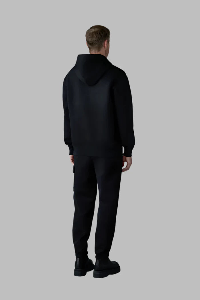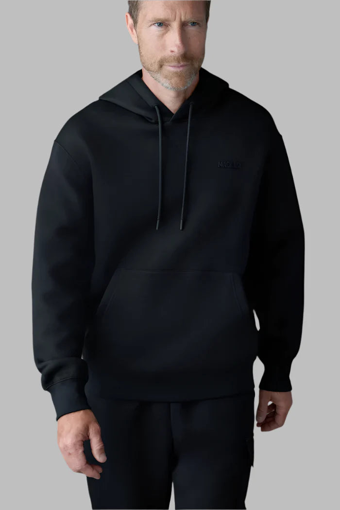 The KRYSTIAN Hoodie is the epitome of modern luxury, blending refined craftsmanship with effortless street style. Designed for a relaxed fit, this hoodie is made from ultra-soft double-face jersey, offering a plush feel with superior breathability. Featuring a drop-shoulder cut for a contemporary silhouette, it is finished with rib-knit trims, a kangaroo pocket, and an adjustable drawcord hood for ultimate versatility. A subtle "MACKAGE" silicone logo at the chest adds a sophisticated branded touch.